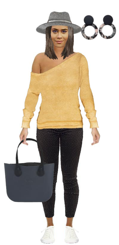 #yellow #bag #black #sneakers #earrings