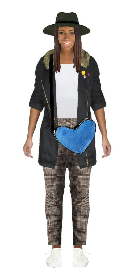 #blue #parka #heart #plaid #hat #crossbodybag #faux