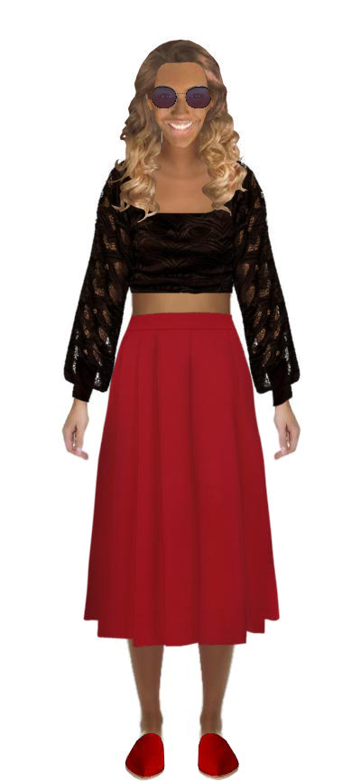 #red #skirt #blouse #croppedtop #black